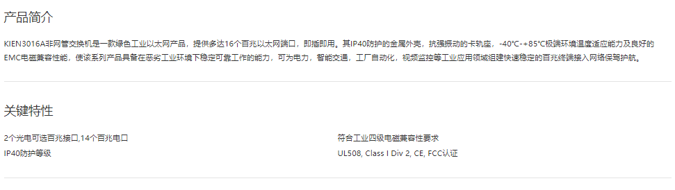 非網管型以太網交換機KIEN3016A 16端口非網管型卡軌式交換機