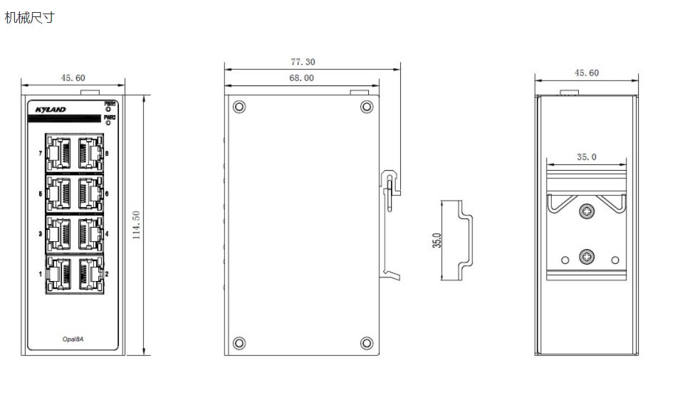非網管型以太網交換機Opal8A 8端口二層入門級非網管型卡軌式交換機