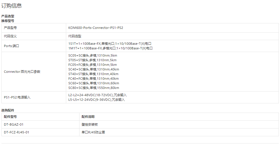 光纖收發器KOM600 2端口卡軌式光纖收發器