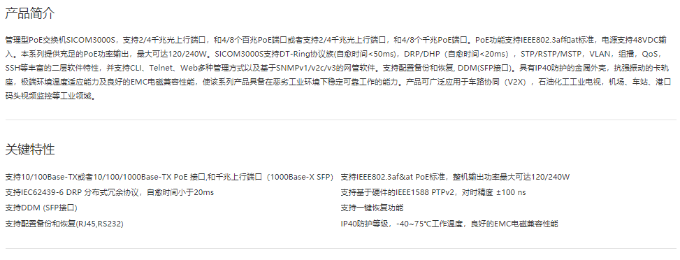 以太網供電(PoE)交換機SICOM3000S 8GP+4G/8P+4G端口二層網管型卡軌式PoE交換機