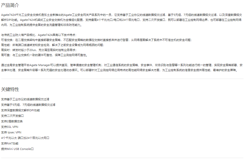 工業(yè)安全產(chǎn)品Agate7424 24+4G 端口機(jī)架式工業(yè)安全交換機(jī)