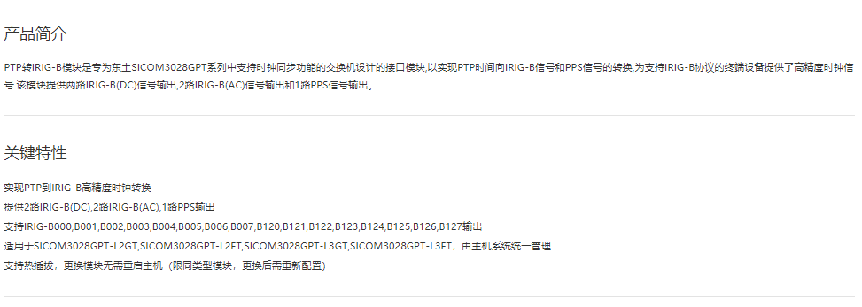全方位多功能以太網交換平臺IRIG-B Module PTP 轉 IRIG-B 輸出時鐘模塊