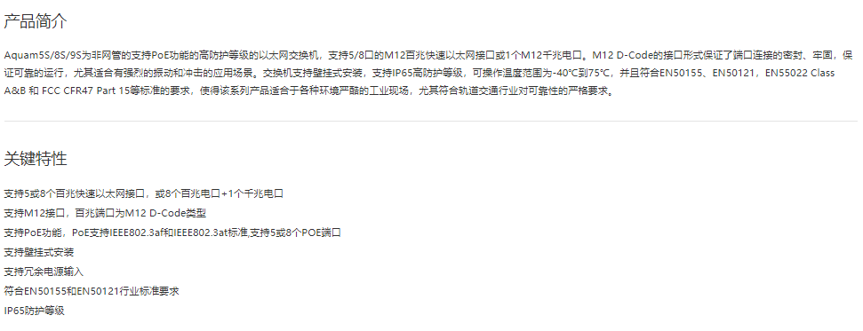 EN50155以太網交換機Aquam5S/8S/9S 5/8/9端口非網管型PoE IP65以太網交換機