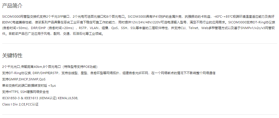 卡軌式網管型以太網交換機SICOM3000 8+2G端口二層網管型卡軌式交換機