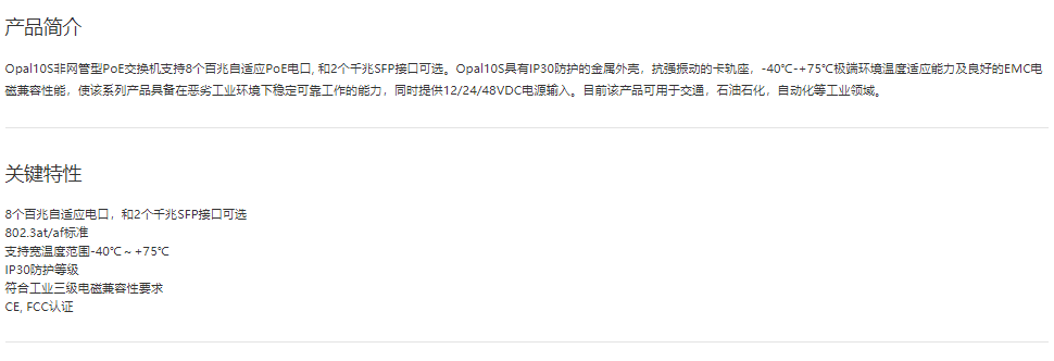 以太網供電(PoE)交換機Opal10S 8/10口非網管型PoE卡軌式交換機
