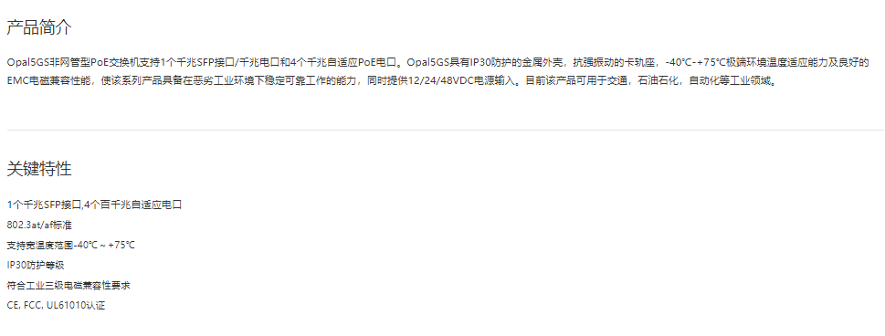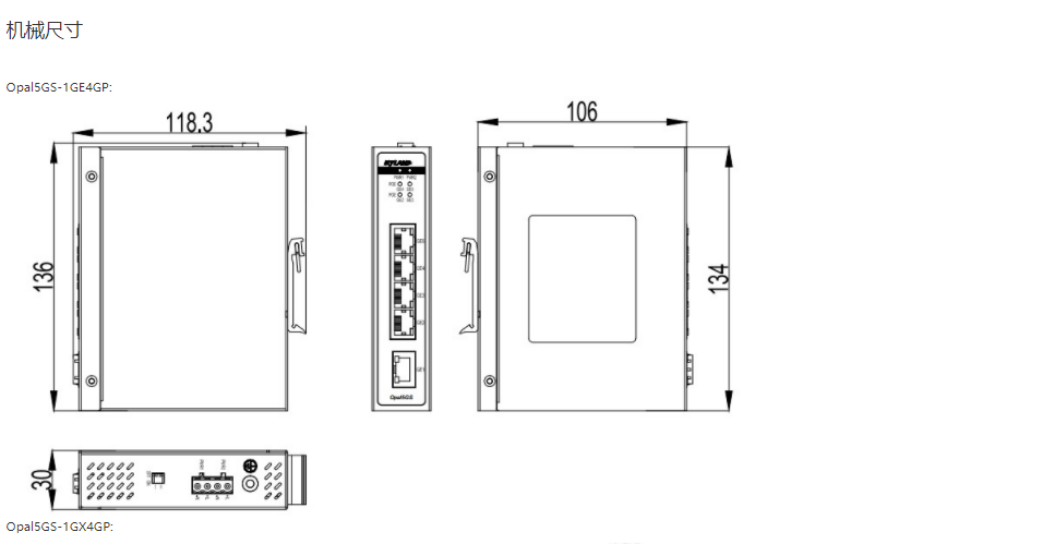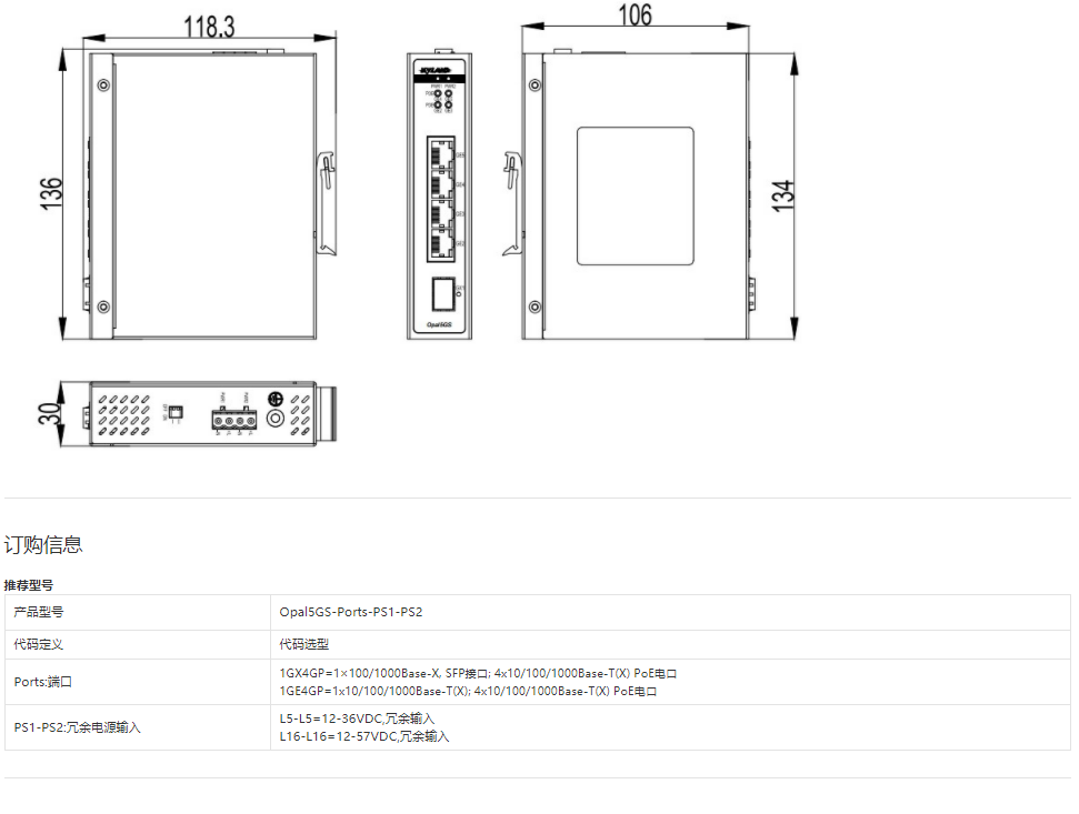 以太網供電(PoE)交換機Opal5GS 5口非網管型PoE卡軌式交換機