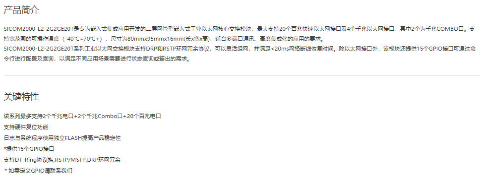 工業以太網交換模塊SICOM2000-L2-2G2GE20T 4G+20二層管理型交換核心板